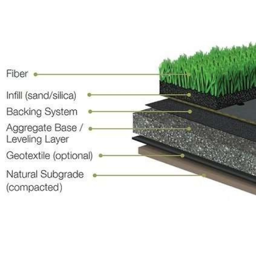 ExcelSports Vivaturf Synthi - Grass Surfacing System is a low-maintenance surface that is, durable, UV treated, safe and shock absorbent to reduce the risk of injury.
